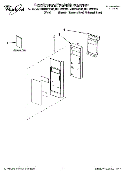 Parts for Whirlpool MH1170XST3: 01 - Control Panel Parts