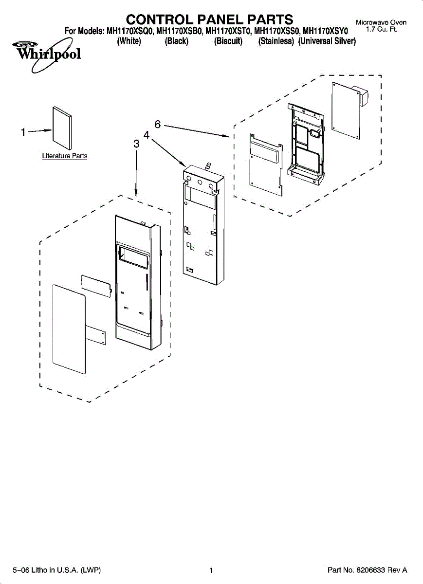 Parts for Whirlpool MH1170XSY0: 01 - Control Panel Parts