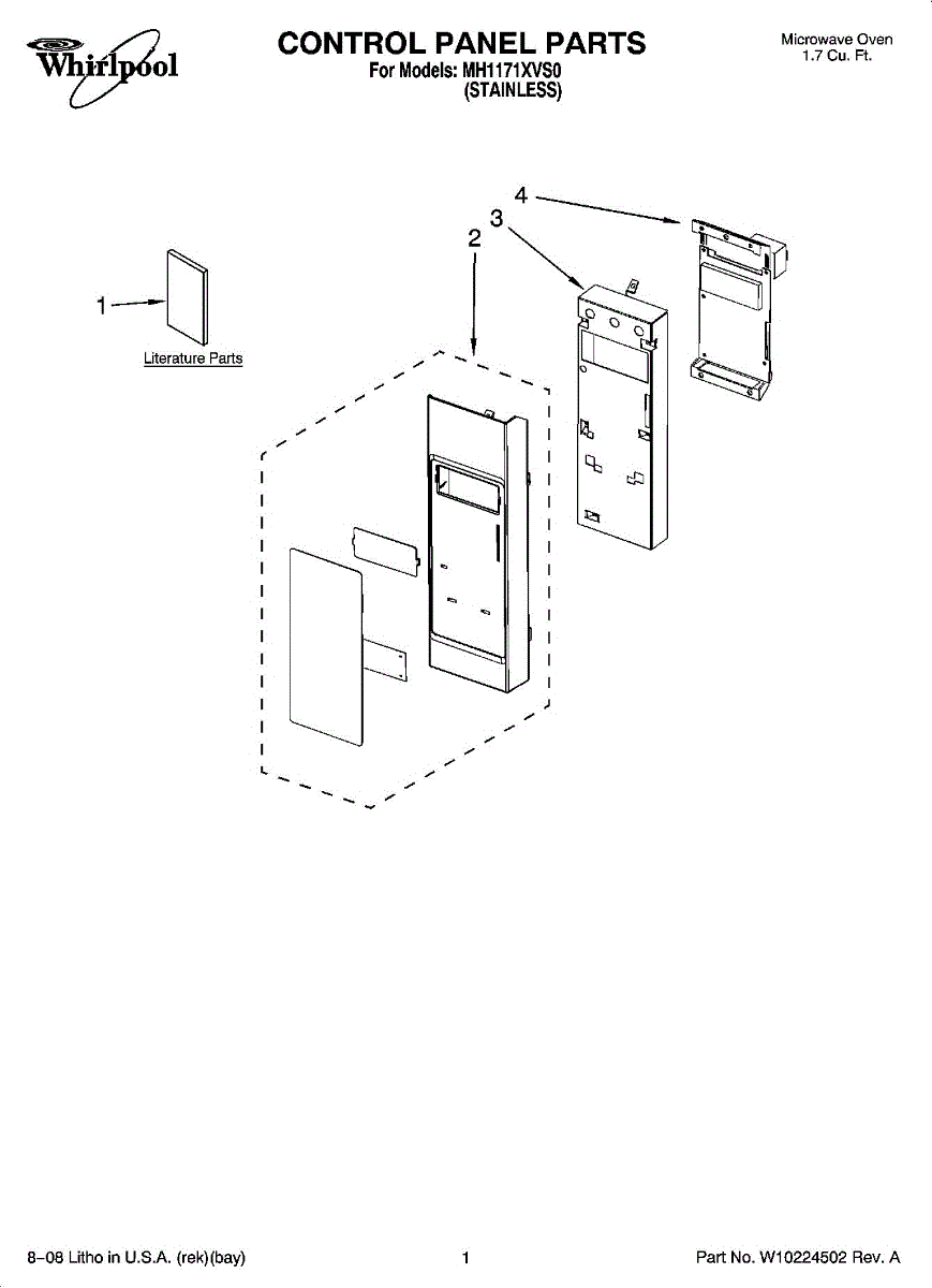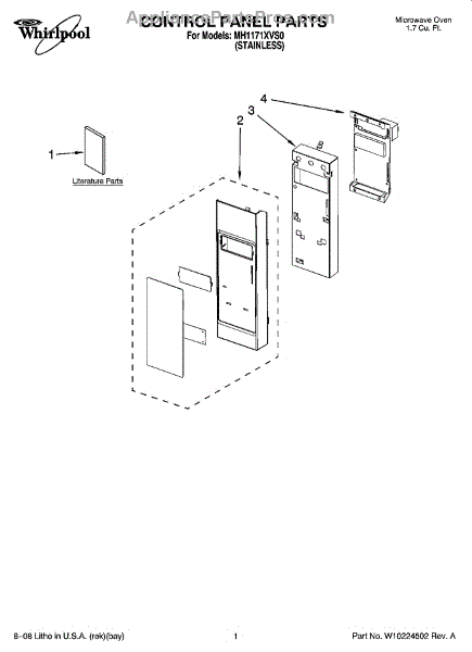 Parts for Whirlpool MH1171XVS0: 01 - Control Panel Parts