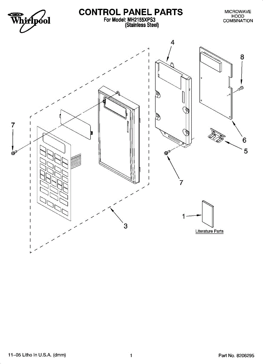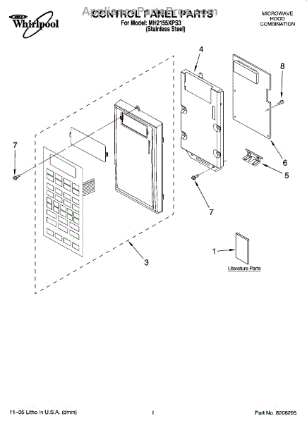 Parts for Whirlpool MH2155XPS3: 01 - Control Panel Parts