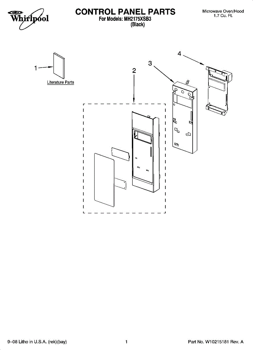 Parts for Whirlpool MH2175XSB3: 01 - Control Panel Parts