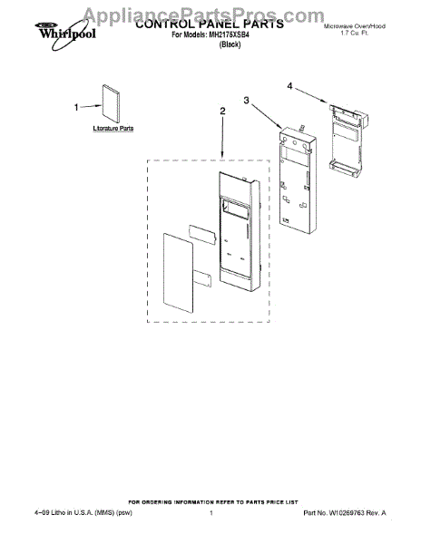 Parts for Whirlpool MH2175XSB4: 01 - Control Panel Parts