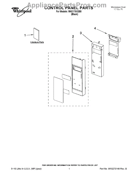 Parts for Whirlpool MH2175XSB5: 01 - Control Panel Parts