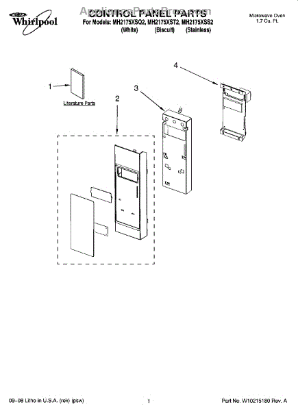 Parts for Whirlpool MH2175XSQ2: 01 - Control Panel Parts