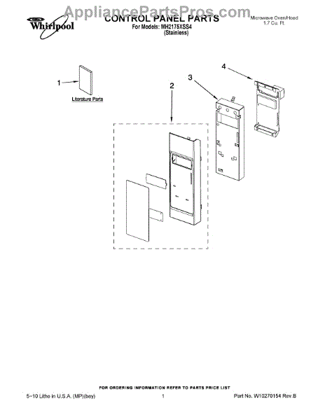 Parts for Whirlpool MH2175XSS4: 01 - Control Panel Parts