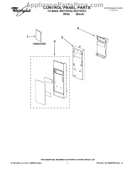 Parts for Whirlpool MH2175XST3: 01 - Control Panel Parts