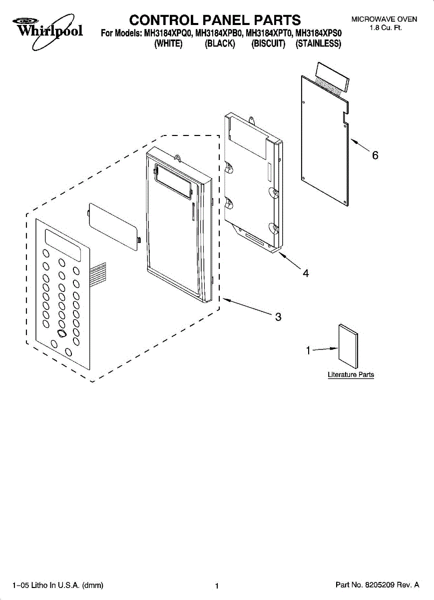 Parts for Whirlpool MH3184XPS0: 01 - Control Panel Parts
