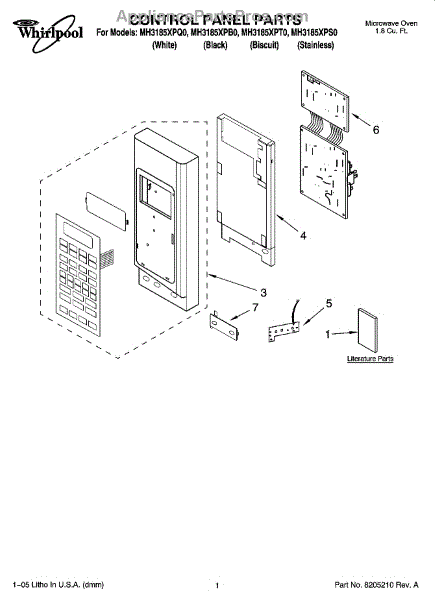 Parts for Whirlpool MH3185XPB0: 01 - Control Panel Parts