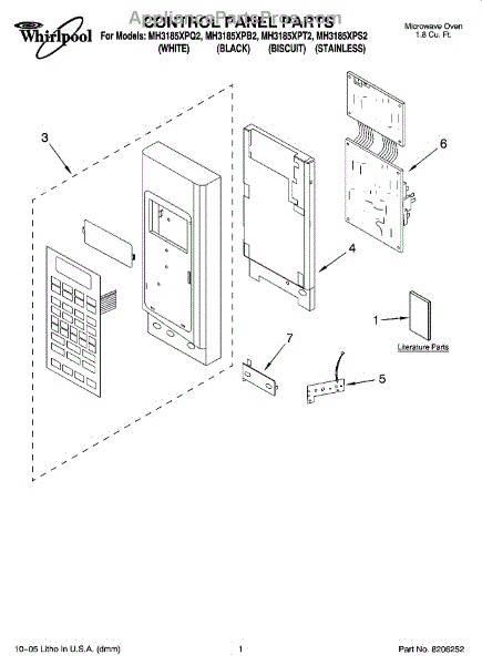 Parts for Whirlpool MH3185XPT2: 01 - Control Panel Parts