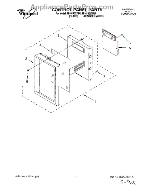 Parts for Whirlpool MH6110XBQ5: 01 - Control Panel Parts