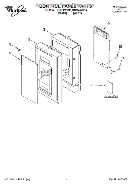 Parts for Whirlpool MH6140XKQ0: 01 - Control Panel, Literature Parts