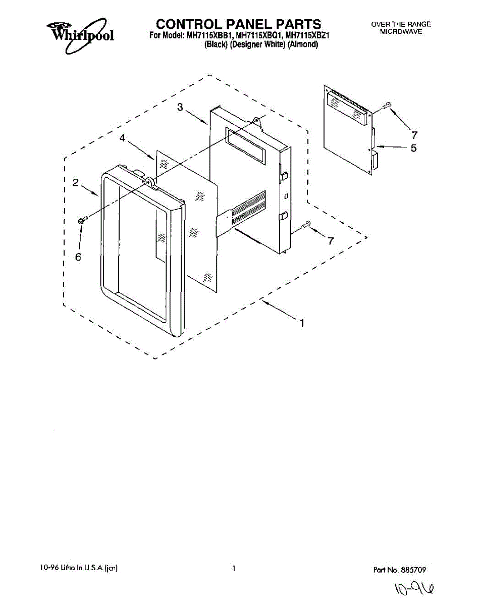 Parts for Whirlpool MH7115XBB1: 01 - Control Panel Parts