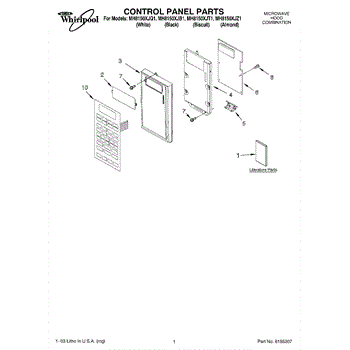 Parts for Whirlpool MH8150XJZ1: 01 - Control Panel Parts