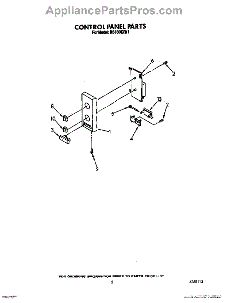 Parts for Whirlpool MS1600XS1: 05 - Control Panel Parts