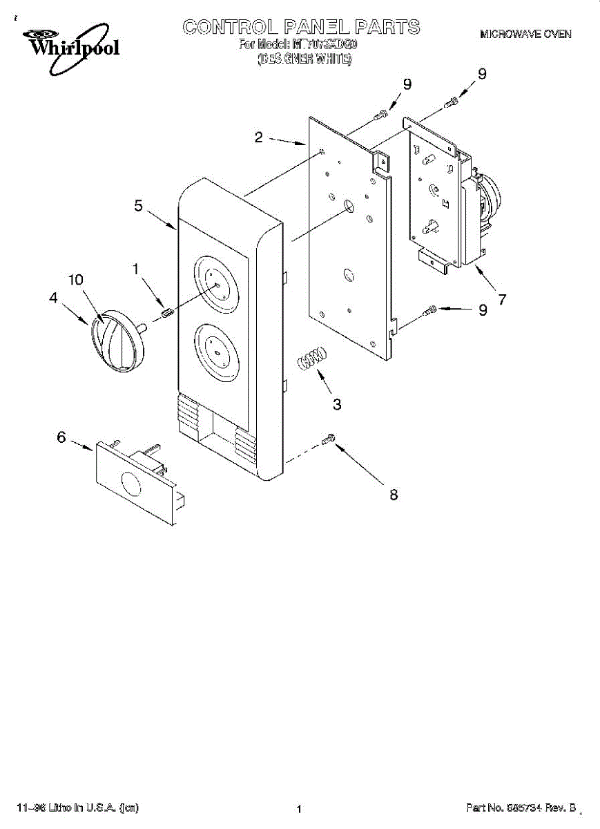 Parts for Whirlpool MT7073XDQ0: 01 - Control Panel Parts