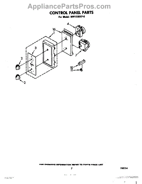 Parts for Whirlpool MW1200XP0: 05 - Control Panel, Lit / Optional Parts