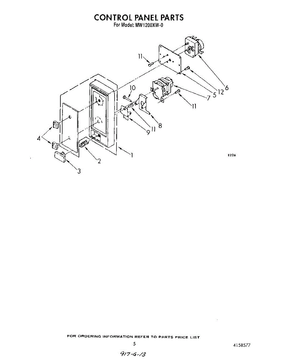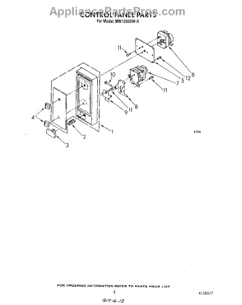 Parts for Whirlpool MW1200XW0: 05 - Control Panel Parts