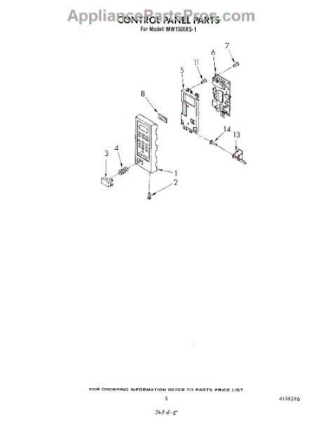 Parts for Whirlpool MW1500XS1: 05 - Control Panel Parts