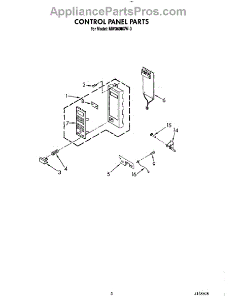 Parts for Whirlpool MW3600XW0: 05 - Control Panel Parts