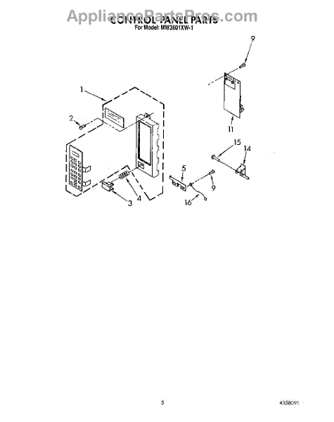 Parts for Whirlpool MW3601XW1: 05 - Control Panel Parts