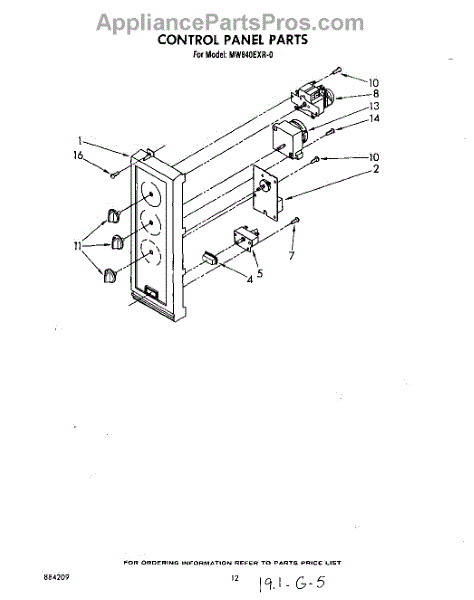 Parts for Whirlpool MW840EXR0: 07 - Control Panel Parts