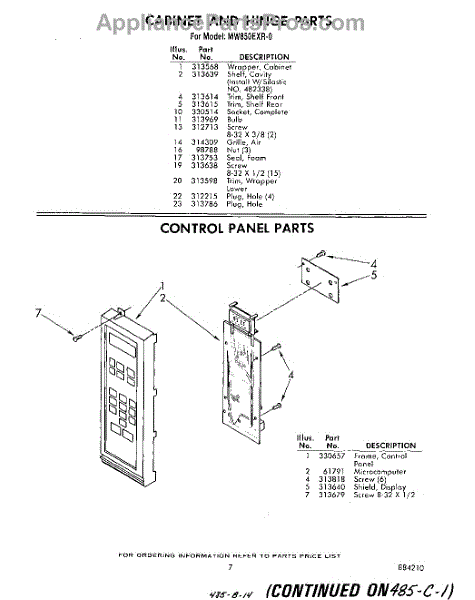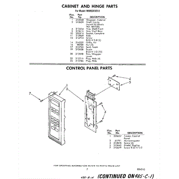 Parts for Whirlpool MW850EXR0: 07 - Control Panel Parts
