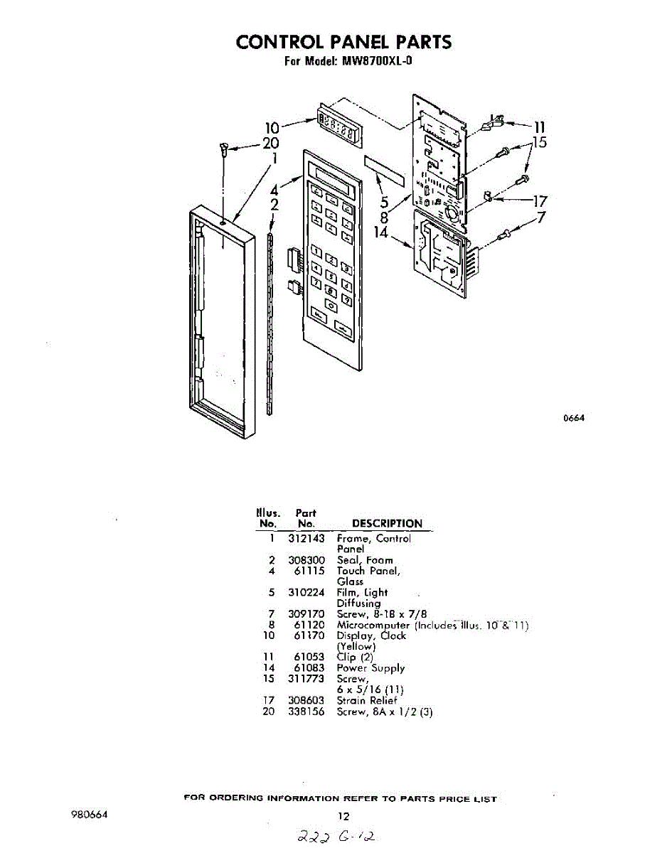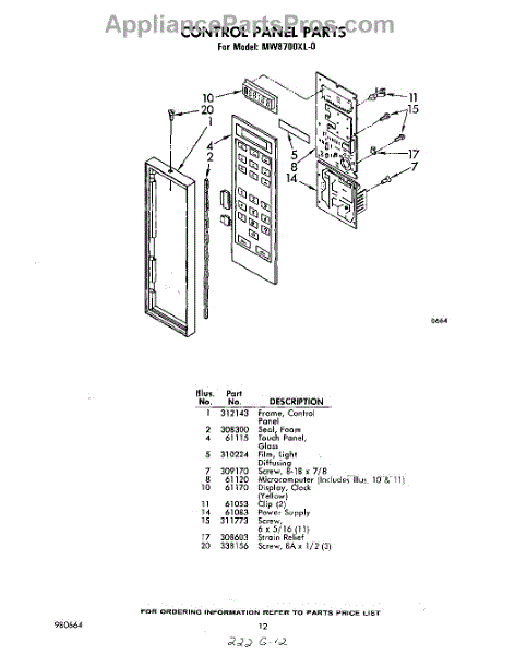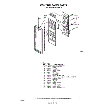 Parts for Whirlpool MW8700XL0: 07 - Control Panel Parts