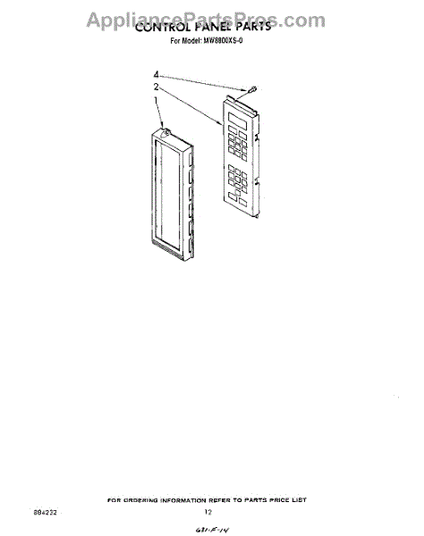 Parts for Whirlpool MW8800XS0: 07 - Control Panel Parts