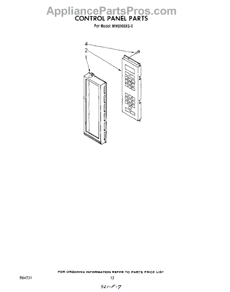 Parts for Whirlpool MW8900XS0: 07 - Control Panel Parts