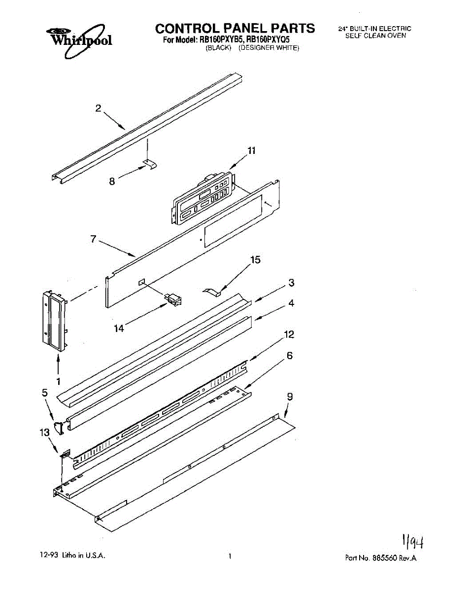Parts for Whirlpool RB160PXYQ5: 01 - Control Panel Parts