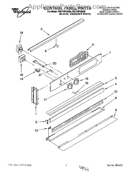 Parts for Whirlpool RB170PXBB0: 01 - Control Panel, Literature Parts