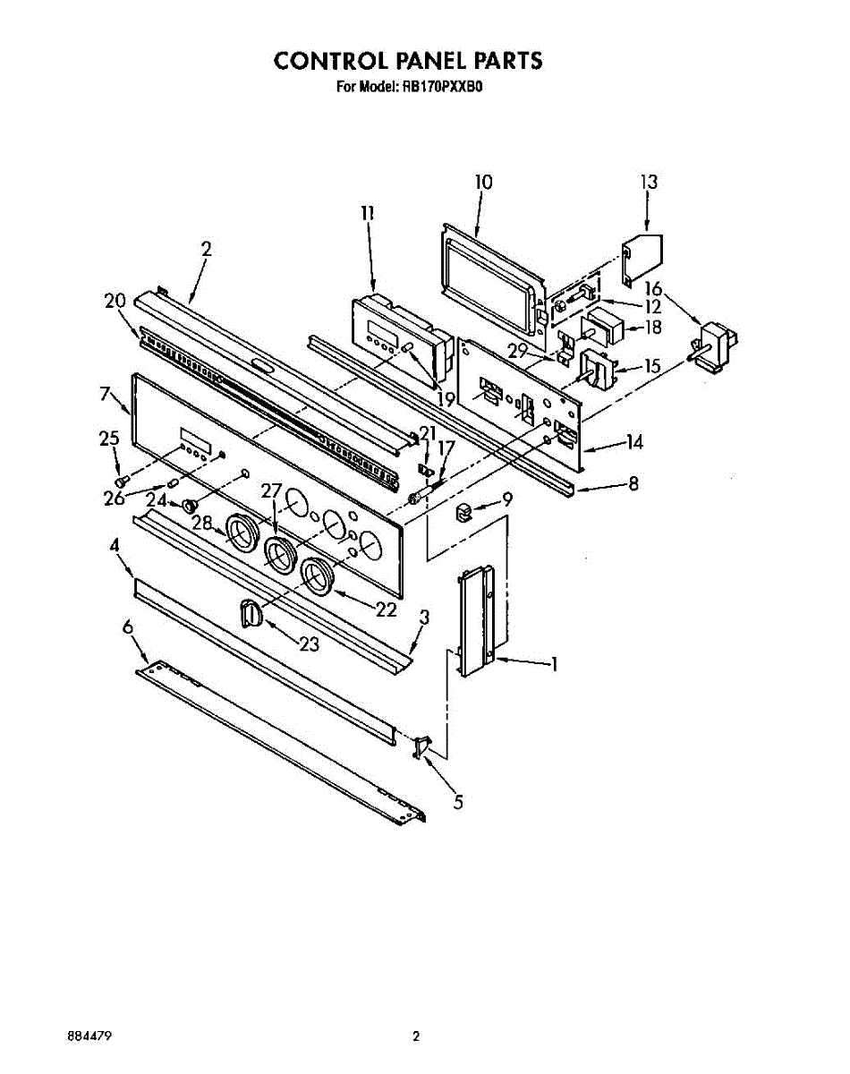 Parts for Whirlpool RB170PXXB0: 02 - Control Panel Parts