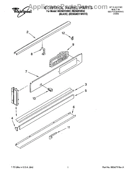 Parts for Whirlpool RB260PXBB2: 01 - Control Panel, Literature Parts