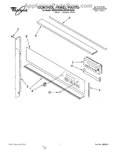 Parts for Whirlpool RB262PXAB0: 01 - Control Panel Parts