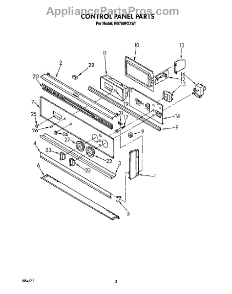Parts for Whirlpool RB760PXXW1: 02 - Control Panel, Lit / Optional Parts