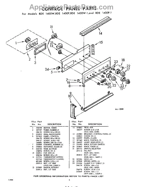 Parts for Whirlpool RDE1400W1: 06 - Control Panel Parts