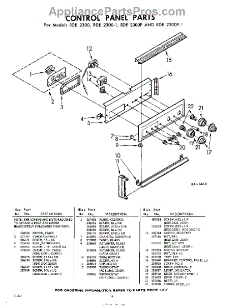 Parts for Whirlpool RDE2300W: 06 - Control Panel Parts
