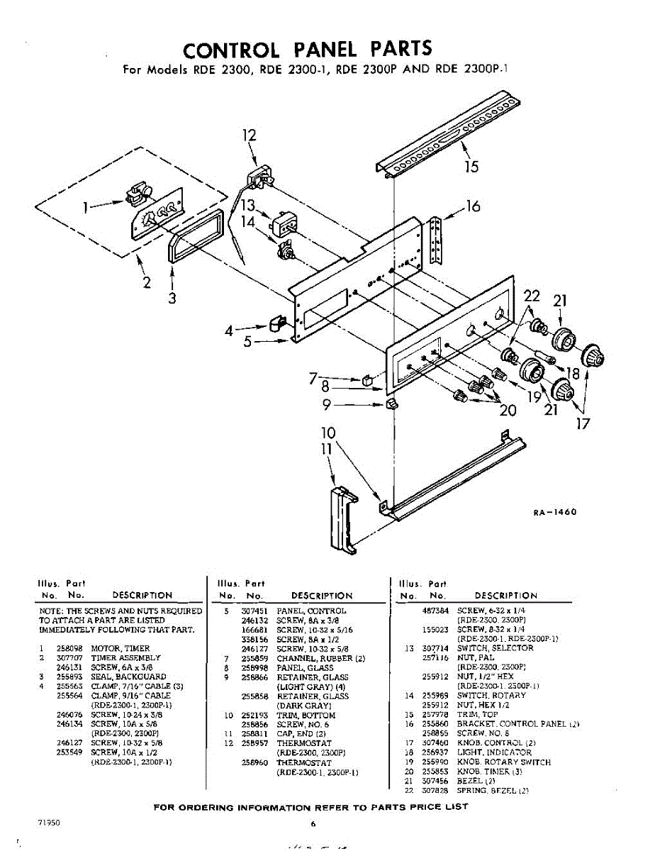 Parts for Whirlpool RDE2300W1: 06 - Control Panel Parts