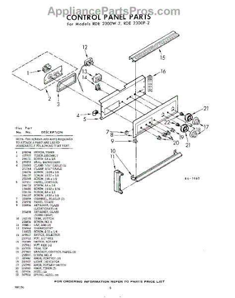 Parts for Whirlpool RDE2300W2: 06 - Control Panel Parts