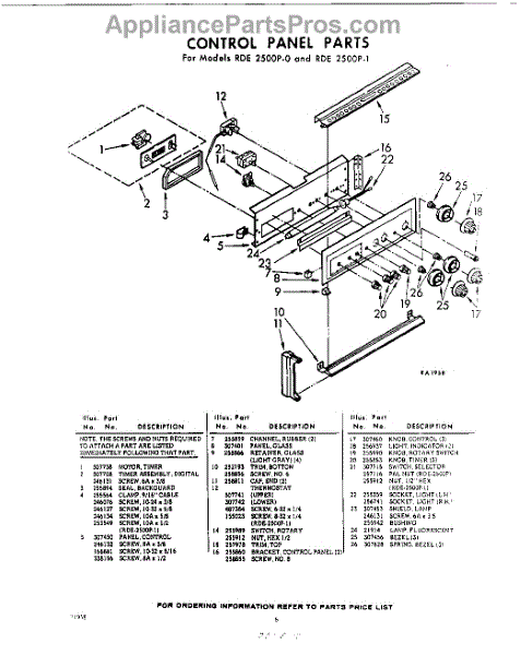 Parts for Whirlpool RDE2500P1: 06 - Control Panel Parts