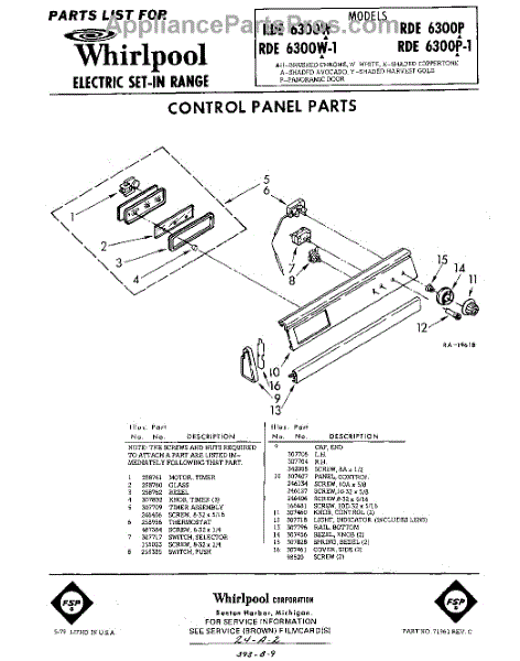 Parts for Whirlpool RDE6300W: 01 - Control Panel Parts