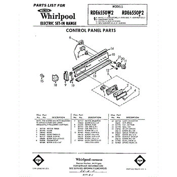 Parts for Whirlpool RDE6550W2: 01 - Control Panel Parts