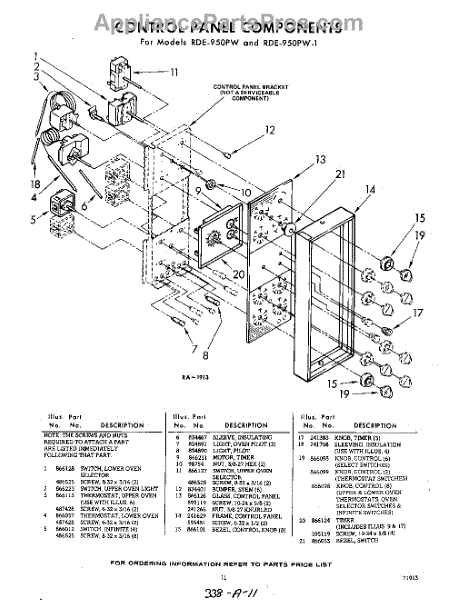 Parts for Whirlpool RDE950PW: 11 - Control Panel Parts