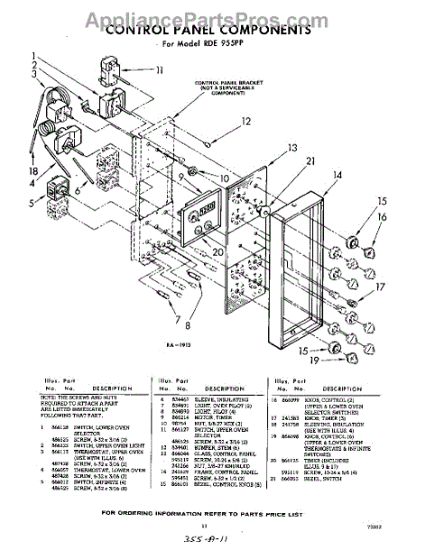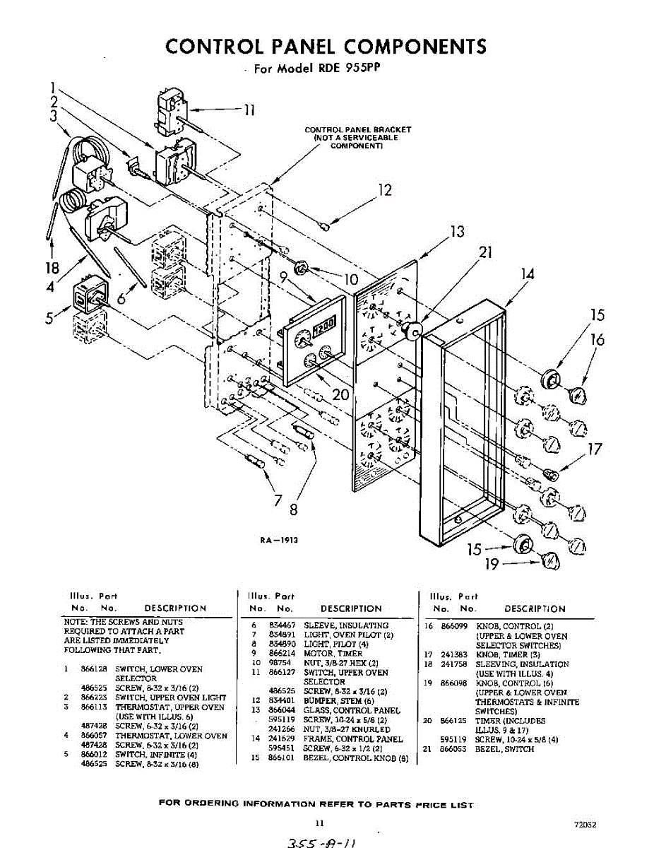 Parts for Whirlpool RDE955PP: 11 - Control Panel Parts
