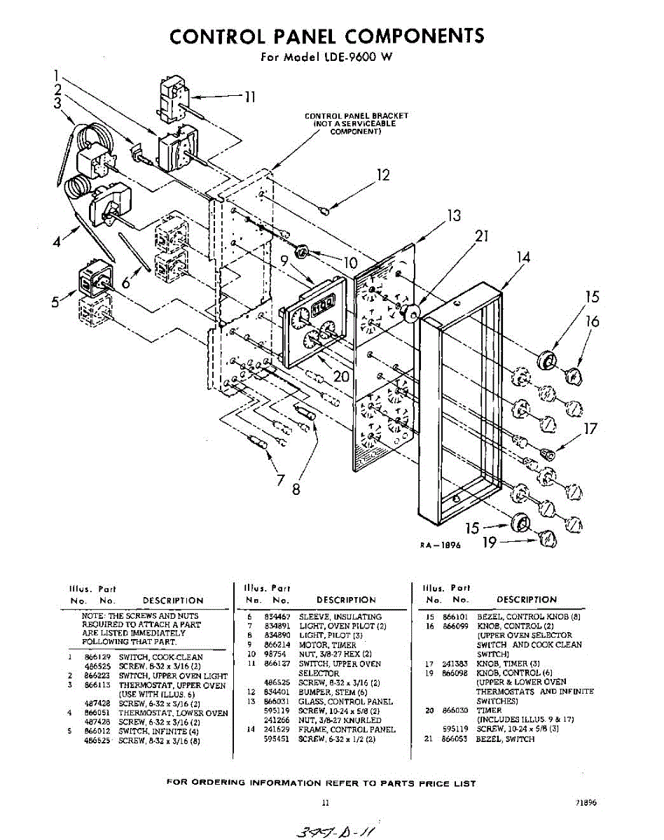 Parts for Whirlpool RDE9600W: 11 - Control Panel Parts