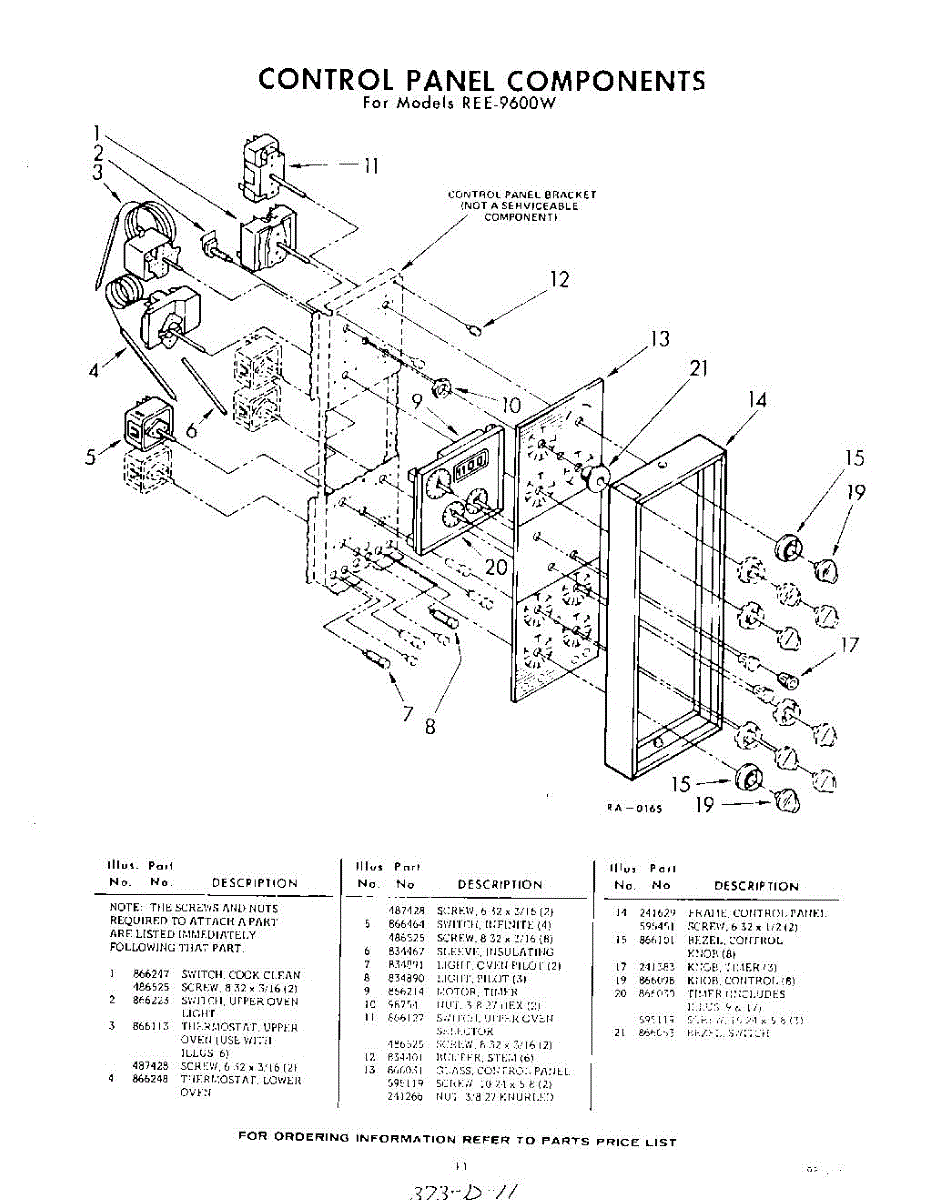 Parts for Whirlpool REE9600W: 11 - Control Panel Parts