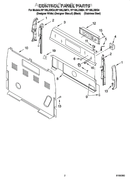 This white control panel is the front fascia for select ranges. It mounts to the console/backguard and supports the oven control and switches, restoring a clean, secure control area when the original panel is cracked, warped, or discolored.