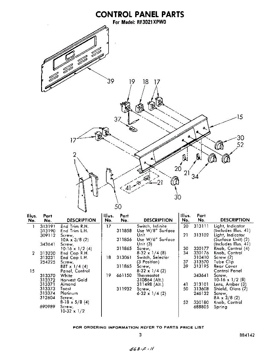 Parts for Whirlpool RF3021XPW0: 03 - Control Panel Parts