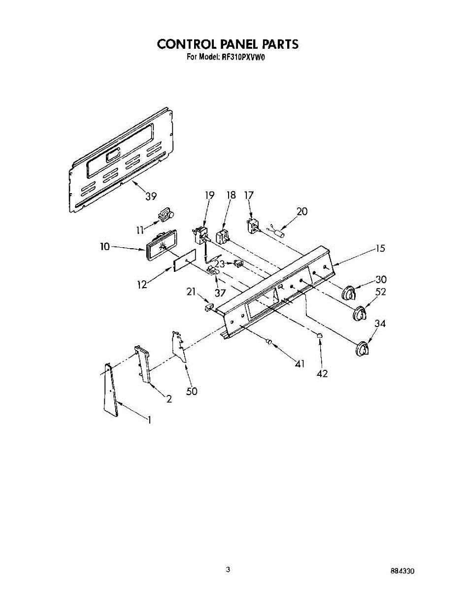 Parts for Whirlpool RF310PXVN0: 03 - Control Panel Parts