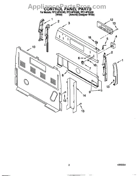 Parts for Whirlpool RF314PXGQ0: 02 - Control Panel Parts
